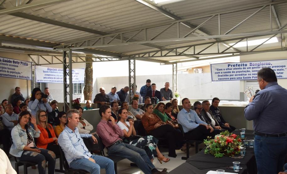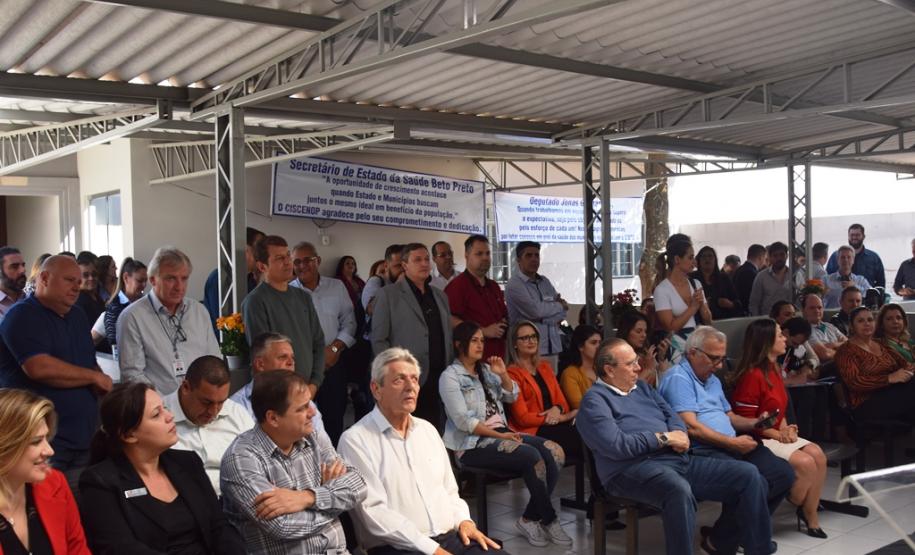 Diversos prefeitos da região, secretários municipais, vereadores, profissionais de saúde e o deputado Jonas Guimarães participaram da inauguração