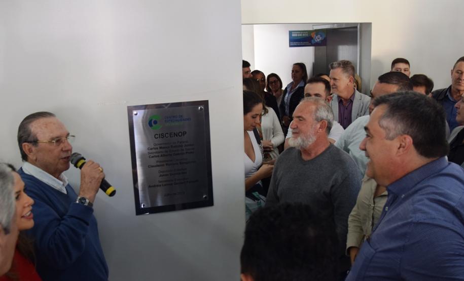 Instalações - O espaço inaugurado abriga 15 ambulatórios. Possui ainda ampla área de acessibilidade e mobilidade, e espaços de atendimento administrativo para garantir mais conforto e privacidade aos profissionais e pacientes de 11 municípios que integram a 13ª Regional de Saúde. Um terreno do Estado já está disponível para a construção da sede própria do Ciscenop, obra que deverá iniciar em breve. "Se o projeto chegar logo, a gente consegue iniciar ainda neste ano. O consórcio e as prefeituras, de forma articulada com a Regional, trata do projeto, e o Estado toca a obra", disse Beto Preto.