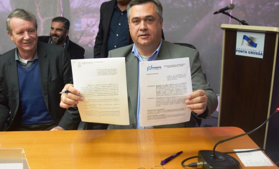 O protocolo de intenções para que o município de Ponta Grossa administre a antiga Maternidade Santana, até então cedida pelo Estado para a Unimed, foi assinado nesta segunda-feira (8) pelo secretário de Estado da Saúde, Beto Preto, e pelo prefeito Marcelo Rangel.