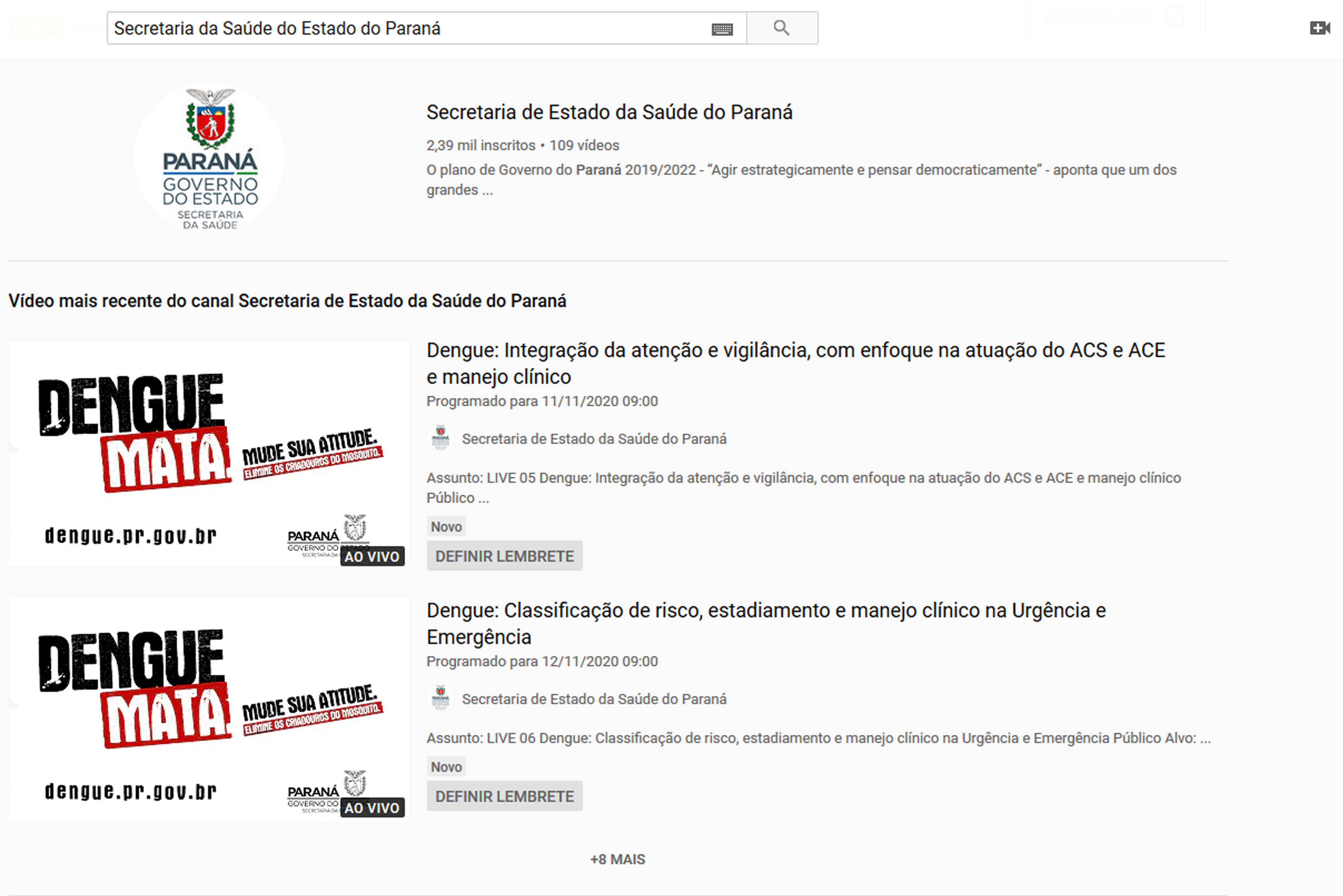 Como parte do Plano Estadual de Enfrentamento à Dengue no período epidemiológico 2020/2021, a Secretaria da Saúde do Paraná vem reforçando a preparação e capacitação dos profissionais que atuam na linha de frente do combate ao mosquito Aedes aegypti e no atendimento ao usuário da saúde.