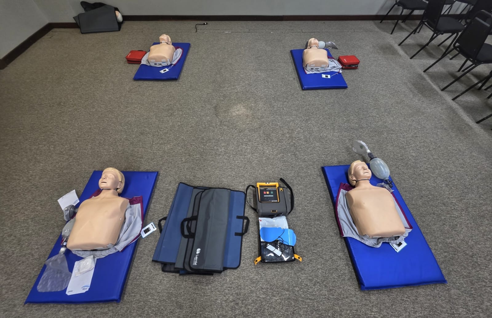 Um centro de treinamento foi montado pela Coordenação de Urgência e Emergência com diversos equipamentos hospitalares para a simulação de ocorrências comuns, com a finalidade de praticar procedimentos e a rápida tomada de decisão.