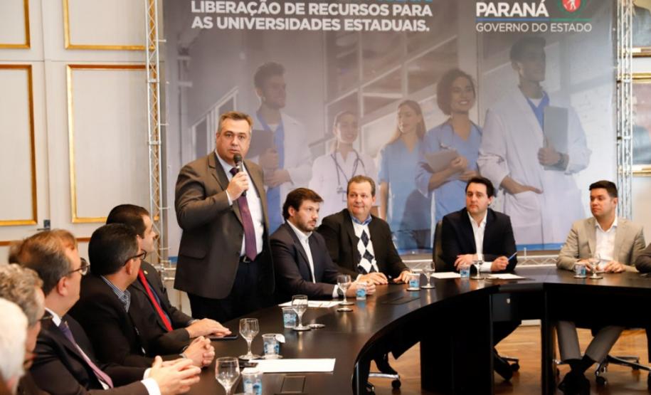 Nesta segunda-feira (26), o governo do Estado divulgou adicional de R$ 130 milhões para o orçamento de sete universidades estaduais do Paraná e quatro hospitais de instituições de ensino superior. O suplemento financeiro foi anunciado pelo governador Carlos Massa Ratinho Junior em reunião com os secretários de Estado da Saúde, Beto Preto, representantes da Secretaria da Fazenda e do superintendente da Ciência, Tecnologia e Ensino Superior, Aldo Bona.